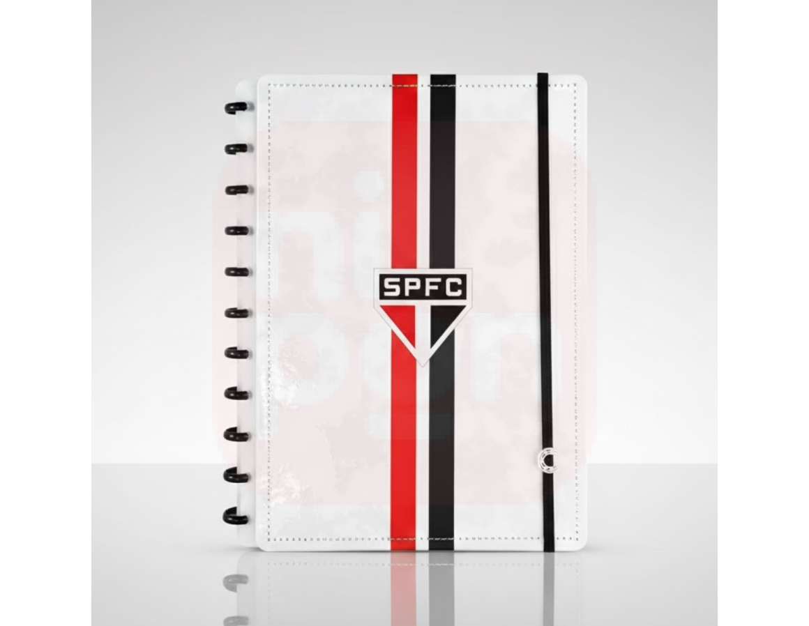 O Caderno Inteligente São Paulo FC Tricolor Paulista Branco – Grande é a escolha ideal para quem carrega o amor pelo clube em todos os momentos. Com capa oficial inspirada no Tricolor, o caderno traz o moderno sistema de discos, permitindo remover, adicionar e reorganizar folhas com facilidade, sem danificar o material.