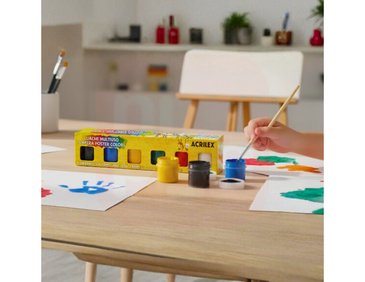 2. Tinta Guache Multiuso Têmpera Poster Colors 30ml com 6 Cores – Acrilex